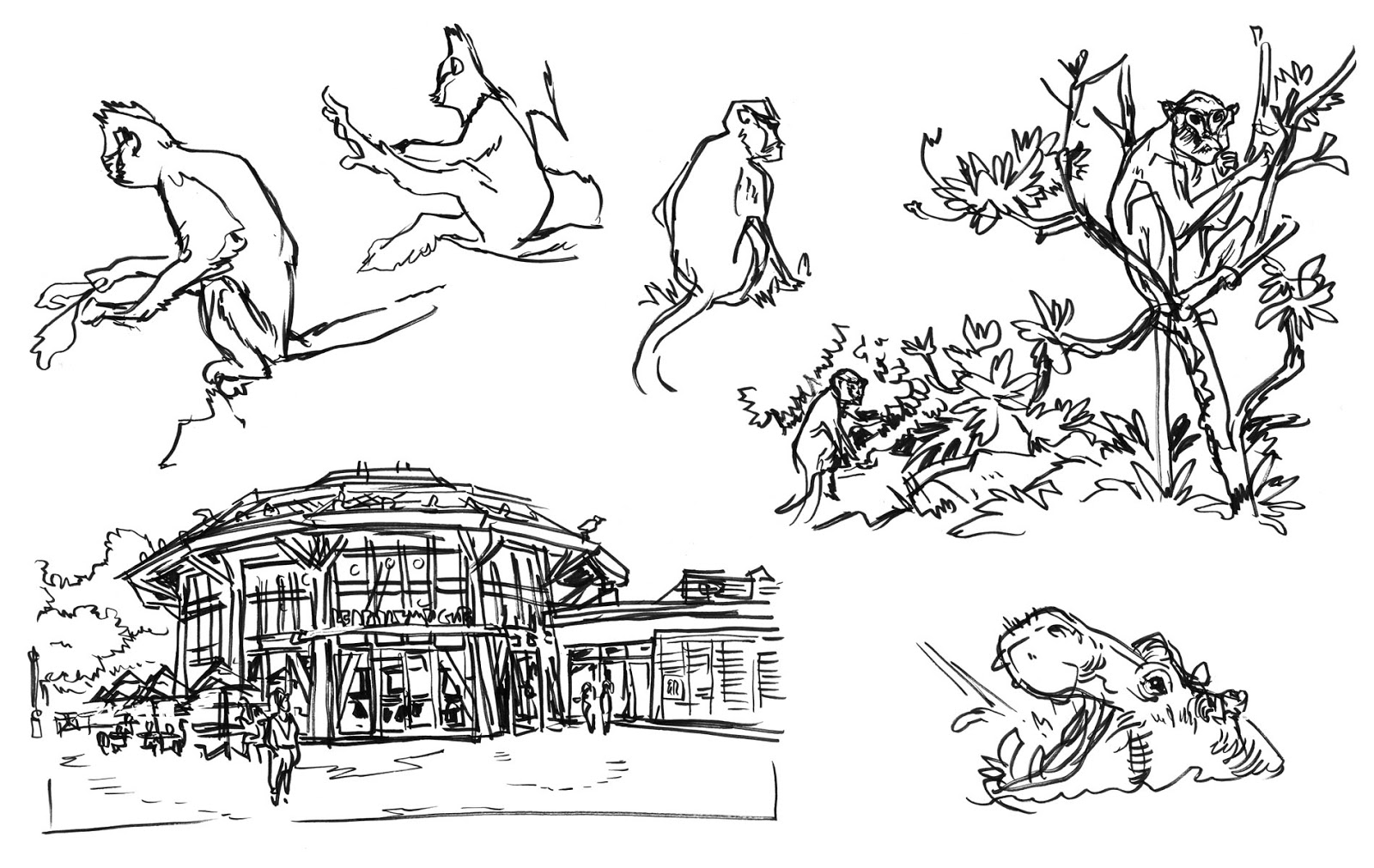 I did a bit of drawing in the Africa Hall, but zoo sketching has spoiled me, and I find it pretty dull drawing stuffed animals. I prefer the lively exhibits like the penguin tank.